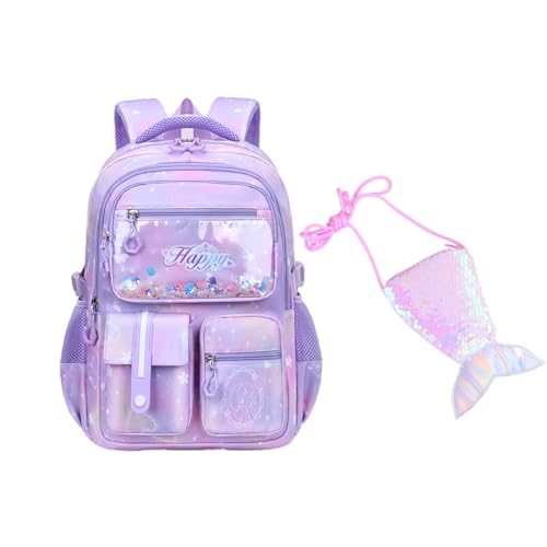 Damaiyiyiyi Kawaii glittrande tvådelad ryggsäck för barn och tjejer, studentryggsäck., Lila, L