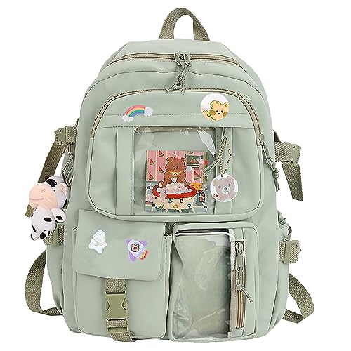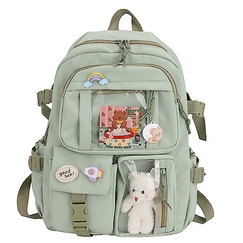 Kawaii-ryggsäck med Stor Kapacitet med Söta Björntillbehör, Japansk Skolväska med Flera Fickor för Tonårsflickor Grön (Green)