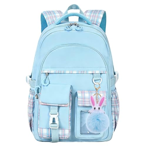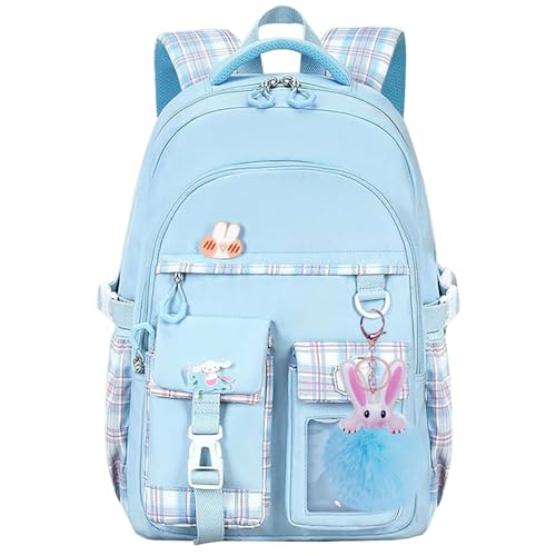 Tanou skolväska flickor skolväskor barn, stor kapacitet skolryggsäck för flickor från 1:a till 4. Klass, andningsbar Kawaii ryggsäck skola flicka med hänge, blå, 31 cm (L) x 16 cm (A) x 45 cm (A), Ung