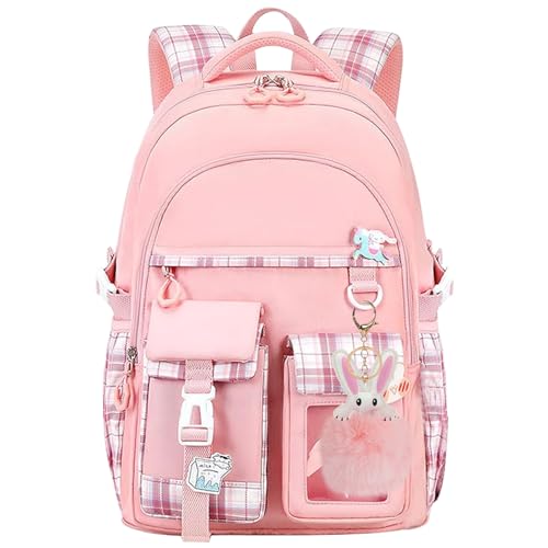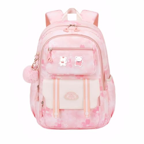 Aucuu Ryggsäck för flickor, ryggsäck för tonårsflickor, Kawaii ryggsäck, vattentät skolväskor för flickor, barnryggsäck med stor kapacitet, för utomhusbruk, skola, resor, nr 1 rosa, 36*28*16cm