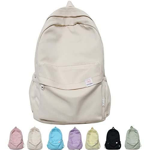 Estetisk ryggsäck för flickor, enfärgad estetisk skolväska stor kapacitet Kawaii ryggsäck estetisk ryggsäck för skolstudent laptop ryggsäck ryggsäck, A02-Beige