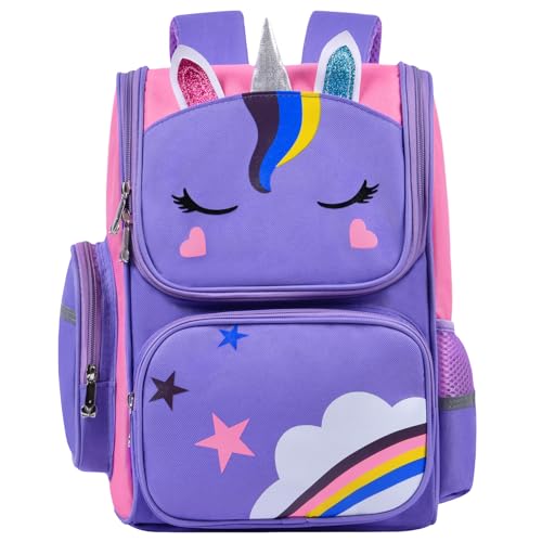 Aucuu Ryggsäck för flickor, söt enhörning skolväskor, Kawaii ryggsäck, vattentät skolväskor för flickor, barnryggsäck med stor kapacitet, för grundskolan, dagis – lila, Lila, en storlek