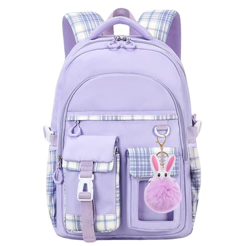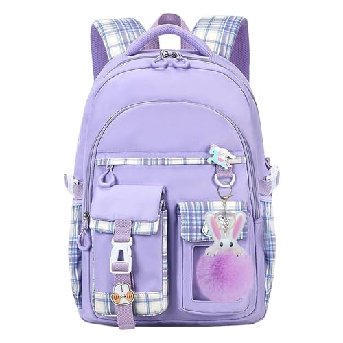 KEBEIXUAN Söt skolväska för flickor, Kawaii-ryggsäck för skolan för flickor, 3–5:e klass, skolryggsäck för tonåring, Lila-A, L