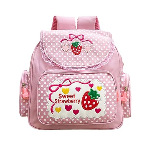 Tonårsflickor Kawaii ryggsäck japansk söt jordgubbe broderi skola ryggsäck ledig dagväska kanvas ryggsäck, Rosa, en storlek