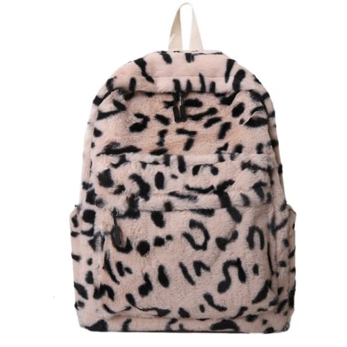 Söt lurvig ryggsäck for flickor tonåringar, leopardmönstrade estetiska skolmaterial Fluffiga väskor, Kawaii-ryggsäck med fuskpäls (Color : Brown)
