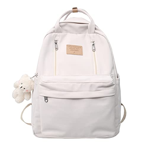 DKIIL NOIYB Kawaii Estetisk Ryggsäck med Fylld Björn Hänge - Söt Preppy Bokväska för Skolflickor och Tonårsstudenter