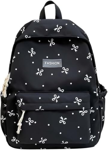 Mifeiwukawa Barn skolryggsäck, Kawaii rosett nylon ryggsäck skolväska, estetisk vardaglig laptop bokväska dagväska barnryggsäckar för flickor sekundär primär mellan, Svart, Size:430.00x320.00x150.00mm