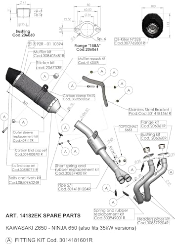 Avgasrör, reservdelsset, LeoVince, anslutningsrör, avgassystem för Kawasaki Ninja Z 650