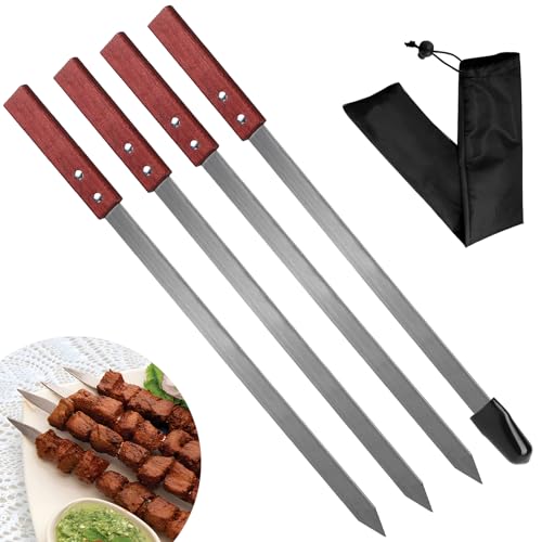 LALAGO 4 stycken platta kebabspett rostfritt stål, 59,4 cm grillspett extra långt, köttspett köttgaffel metallspett, grilltillbehör för grillstång, grillbestick