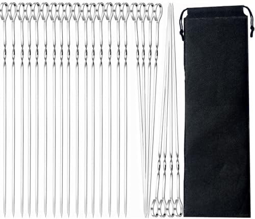 Homealexa 38 cm grillspett, 20 st Kebab-spett i rostfritt stål, återanvändbara platta metallspett, med väska, metallkebab-pinnar BBQ-spett för utomhusgrillning, familjefest, Shish Kabob