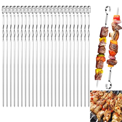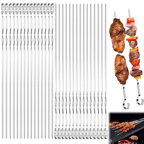 AOMAIGAD 24 st Grillspett 30 cm i Rostfritt Stål, Kebabspett Återanvändbara för BBQ, Kött, Grönsaker, Lägereld eller Grillskål