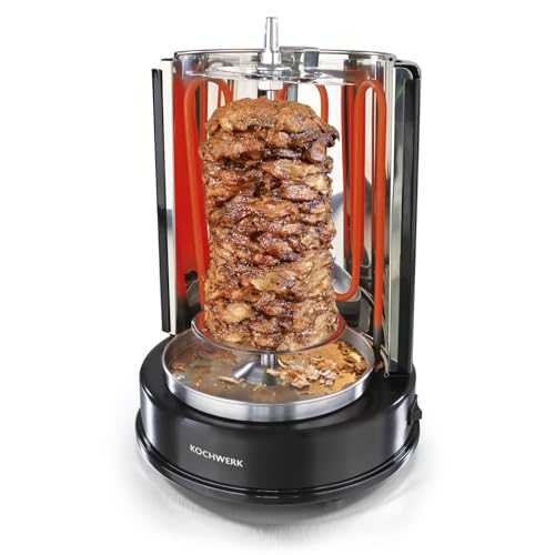 KOCHWERK Rachs kockverk donergrill för hemmet | Vertikalt multispett för kött, fisk och vegetabiliska variationer | Rotisserie med 360° rotation och stort värmeelement | mittspett och 6 kebabspett