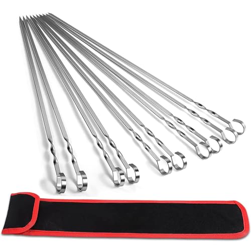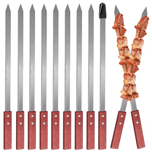 AWCIGG 10 stycken grillspett, 55 cm platta kebabspett kraftigt rostfritt stål Adana Kebab-spett långa köttspett med ficka