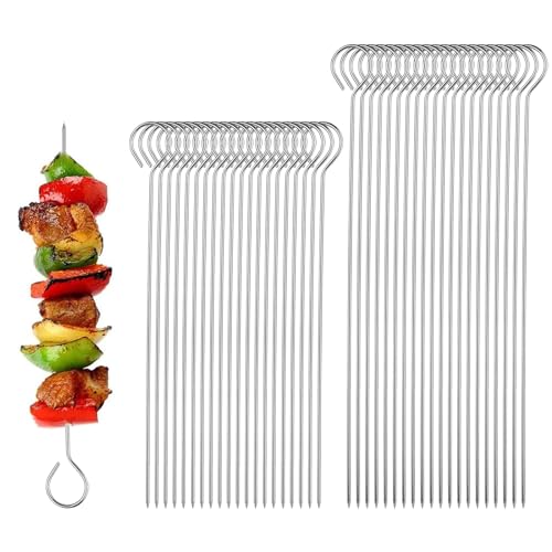 DMJJSD 40 stycken kebabspett, 20 cm och 25 cm, rostfritt stål, för kött, kyckling, räkor, frukt, grönsaker