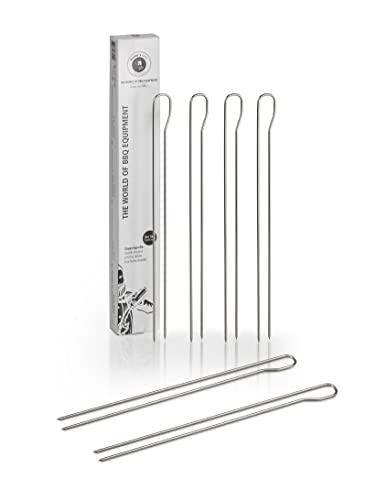 Buddy's BBQ - grillspett/kebabspett, 6 dubbla spett, BBQ spett, grillning, matlagning, kött, fisk, grönsaker, återanvändbara, 29 cm i längd, rostfritt stål, runt material