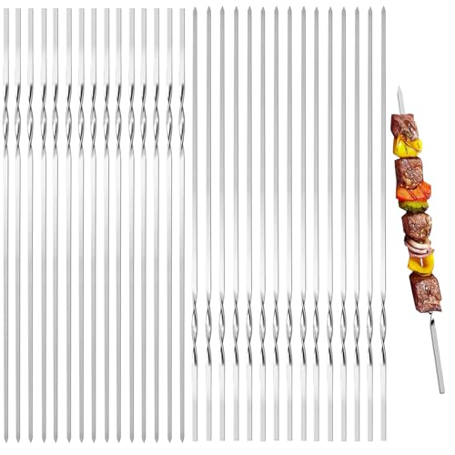 Mino Plus 30 stycken grillspett, 40 cm grill-skewers långa, kebab-spett, grillspett rostfritt stål, återanvändbara kebabbitar, grillspett för grillfester utomhus och i Gar (A)