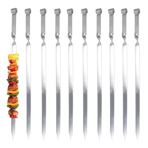 GXFCING 55 cm grillspett rostfritt stål, 10 stycken extra långa platta kebabspett köttspett, metallspett, Adana, kebabspett, med ficka
