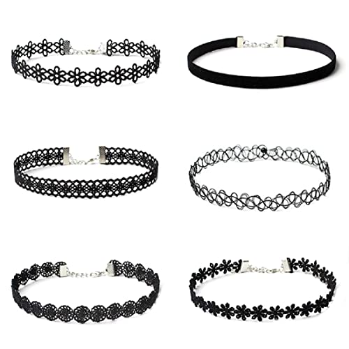 Clyhon 6 stycken elastiskt halsband stretch tatuering choker kedja regnbåge armband vintage tatuering halsband henna halsband för flickor kvinnor tonåringar barn, Plast