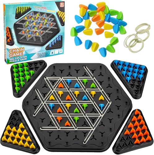Vibbang kedja triangel schackspel, roligt triggle gummibandspel, interaktiv pinne för flera spelare strategi brädspel, pedagogiska hjärngympa leksaker födelsedagspresent, familjespel för barn och
