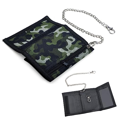 DAWRIS Plånbok för Barn Med Kedja Klämma Dragkedja - Vikbar Tredubbel Portmonnä för Pojkar och Tonåringar, 12 x 8 x 1 cm