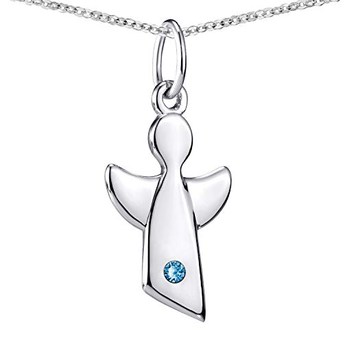 Materia barn ängel hänge med födelsestenar – 925 sterlingsilver med kedja 36–40 cm gåva födelse dop i etui, Sterlingsilver Kubisk zirkon, Kubisk zirkonia