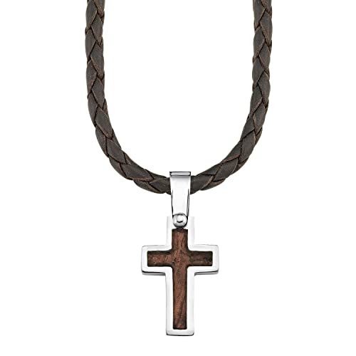 s.Oliver kedja med hänge rostfritt stål trä pojkar barnhalsband, 40+3 cm, silver, kors, Kommer i smycken presentförpackning, 2018841