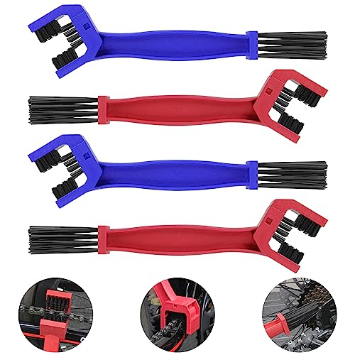 Adiwo kedjerengöringsborste, kedjerengöring, set med 4 kedjeborste, rengöringsborste för rengöring av motorcykel-, cykel- eller skoterkedjor (blå/röd)