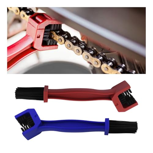 2 stycken kedjeborste motorcykel, dubbelhövdad kedjerengörare motorcykel med tresidiga och långa borst, universellt cykelkedjerengöringsset för motorcykel, cykel, mountainbike