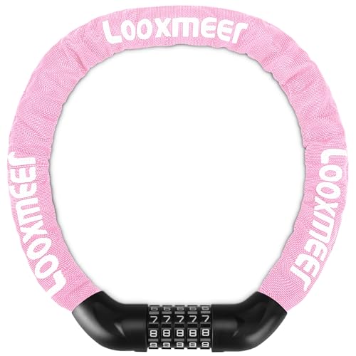 Looxmeer Cykellås Kombination Lås 90cm, Kedjelås Hög säkerhetsnivå med 5-siffrig nummerkod, Cykellåssmed Kedjenummer Kod Kombination Lås För Cykel Motorcykel, Ljusrosa
