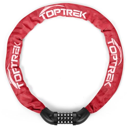 toptrek Cykellås, kombinationslås, cykellås, hög säkerhet med 5 siffrig nummerkod, 6 mm x 100 cm stålkedjelänkar, kedjelås för cykel/motorcykel/e-cykel/skoter (röd)