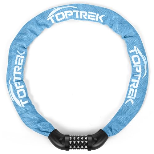 toptrek Cykellås, kombinationslås, cykellås, hög säkerhet med 5 siffrig nummerkod, 6 mm x 100 cm stålkedjelänkar, kedjelås för cykel/motorcykel/e-cykel/skoter (himmelsblå)