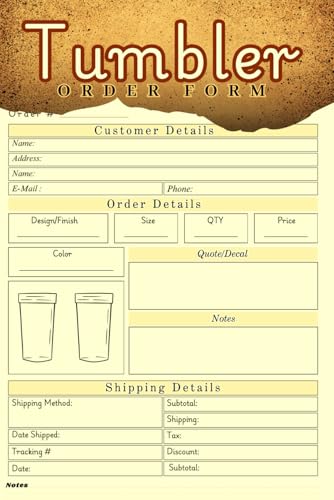 Tumbler Order Form: Use this Form at your Consultation with your Client to Note the Custom Cup details. Keep all your Tracks and Orders in one Place