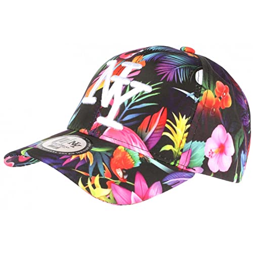 NY röd och svart tropisk blomma baseball solnedgång keps - en storlek - svart