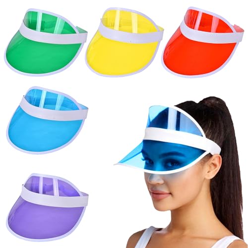 Sertay 5 St Transparent Visir Keps, Retro Neon Solskydd för Golf Tennis, Sol Visor Keps Pub, 80-tal Solvisir, Pokerhatt, Lämplig för Cykling, Löpning, Bergsbestigning, Golf, Färgglad, One