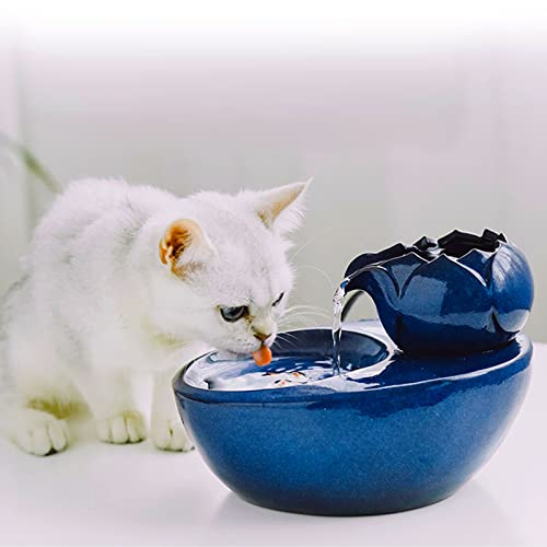Dricksfontän, vattendispenser för katter, keramisk, husdjursfontän, automatisk, vattencykel, vattenutfodring av katter, fontän med bassäng för katt och hund (vit keramik)