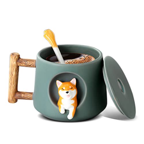 Nizirioo kaffekopp söt Shiba Inu kaffemugg 420 ml keramik tekopp keramikmugg med lock och sked hundar keramik kaffekoppar söt Corgi Dog mugg kaffekopp keramikmugg för hundälskare