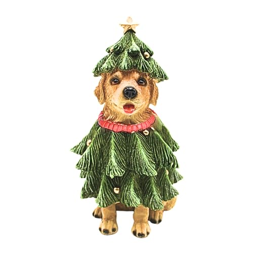 Dekorhjälte24 dekorativ hund, julfigur, figur, hund, dekomops, djurstaty, golden retriever i granmoptik och gran av keramik, i grön, L/B/H 13 x 14 x 24 cm.