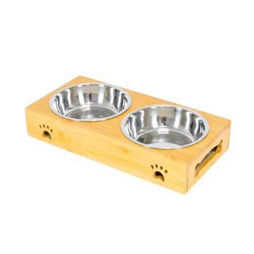 Edipets, Hund Matare Katt, Dricka Hund Katter, Enkel tallrik, Dubbel, Triple Avtagbar Keramik eller Rostfritt stål, Anti-slip Bambu Base (Rostfritt stål, Dubbel)