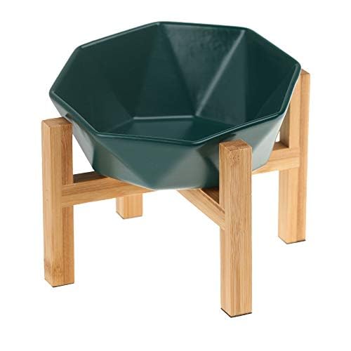 Grön med stativ keramik lutande vinklad kattskål hundskål katt hund matskål katt matskål matstation upphöjda hundbarer för hundar med stativ i massivt trä