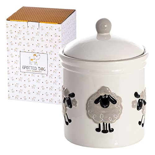 SPOTTED DOG KOMPANY Kexburk i keramik med lock lufttät – stor förvaringsburk, mångsidig förvaringsburk för mjöl, godis, kex, sött fårmotiv, dekoration, får gåva