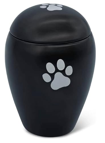 FeinKnick anständig urna 1 liter för katt eller hund inomhus och utomhus – handgjord djururna av högkvalitativ keramik för hundar och katter i svart med silvertass – väderbeständig och för aska