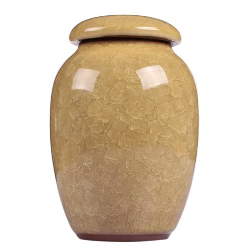 BRDECOR Katt Urna Keramik Yellow Ru kiln pattern 300ml Liten Kremeringsurna För Husdjur