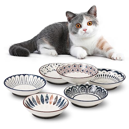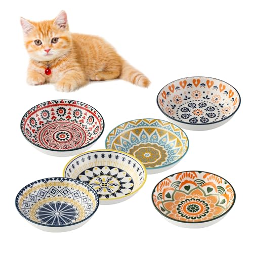 HAOYULUO 6 stycken kattskålar, kattskål, keramik, 14 x 3,5 cm matskål för katt, färgglada kattskålar, kattskålar, kattskålar för kattmatning och vatten