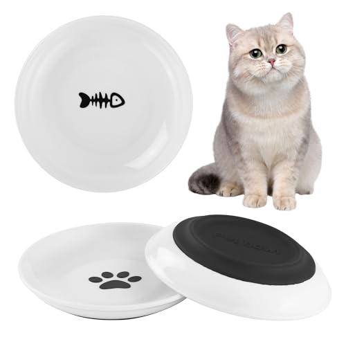Dorakitten foderskål katt keramik: 3 stycken våtfoder katter skålar halkfri set, breda kattskålar för att lindra whisker-trötthet, platta skålar för kattungar och små djur