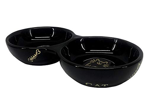 Nobby katt keramik dubbel tupplur "Golden Cat" svart 22,0 x 4,0 cm, 2 x 0,13 l