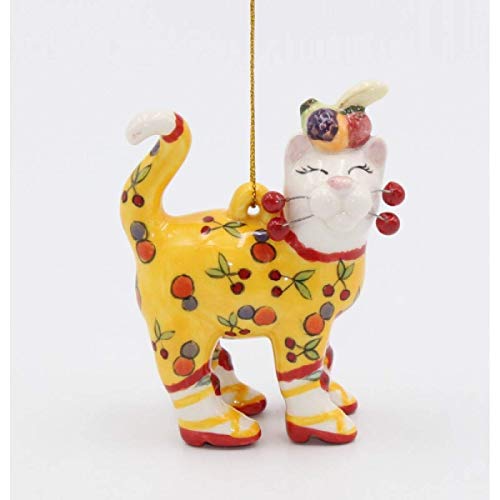Cosmos Gifts katt med körsbärsprydnad, keramik, gul, röd, vit