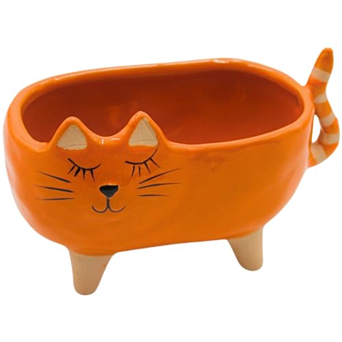 Dekohjälte24 ytterkruka – planteringskruka – blomkruka av keramik, motiv: katt i rosa, mått L/B/H: ca 16 x 8,5 x 10 cm