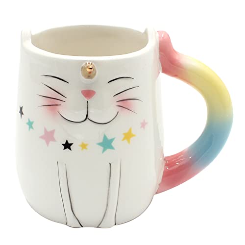 Dekohelden24 Kaffemugg kaffekopp i keramik – motiv: Enhörning katt – storlek: ca H/Ø: 10 x 7 cm/kapacitet: 300 ml