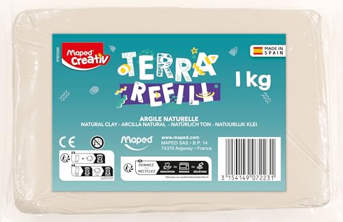 Maped CREATIV 1 kg lerpåfyllning för keramik - självhärdande lera och lätt att använda - kreativ aktivitet för barn - Terra Pottery-kompatibel - från 8 år