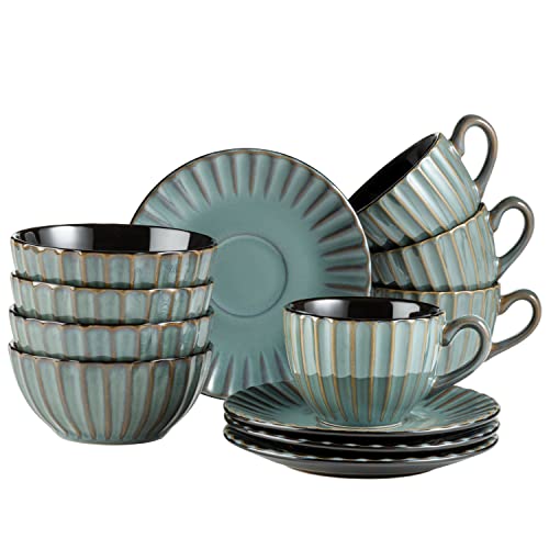 MÄSER 931966 serien Confino porslinsset för 4 personer i en modern vintage look, 12-delad frukostservis service av keramik i petrol med svarta accenter, stengods